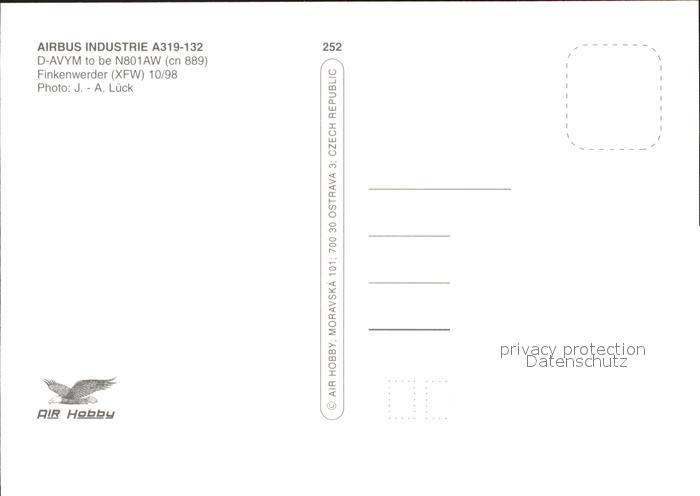 Flugzeuge Zivil America West A319-132 D-AVYM N801AW cn 889 postalisch nicht gelaufen Erhaltung siehe scans