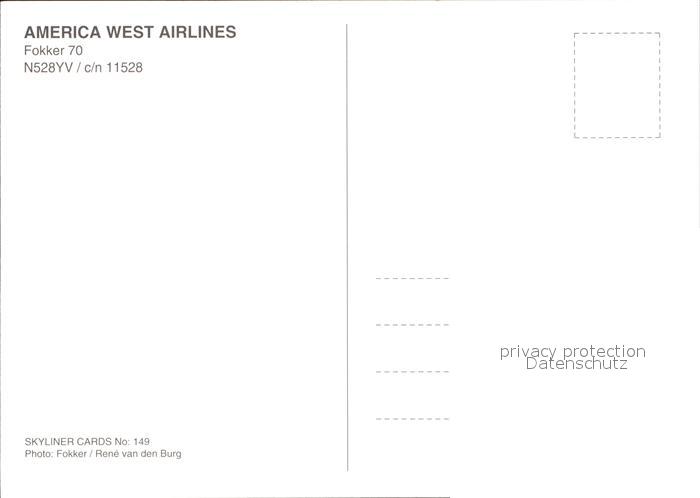 Flugzeuge zivil America West Airlines Fokker 70 N528YV c/n 11528 postalisch nicht gelaufen Erhaltung siehe scans
