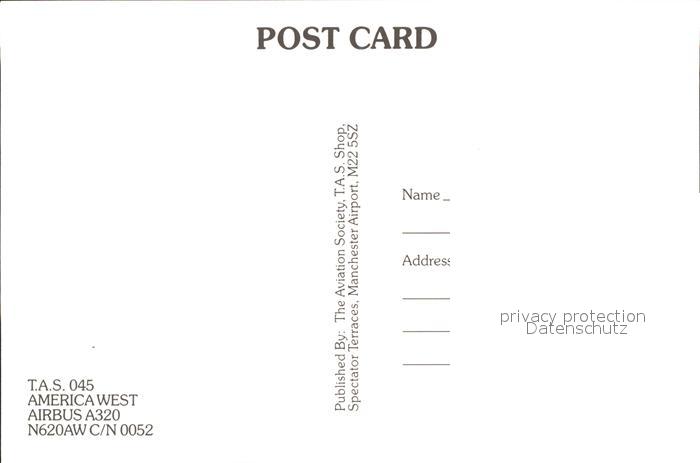 Flugzeuge Zivil America West Airlines N620AW c/n 0052 postalisch nicht gelaufen Erhaltung siehe scans