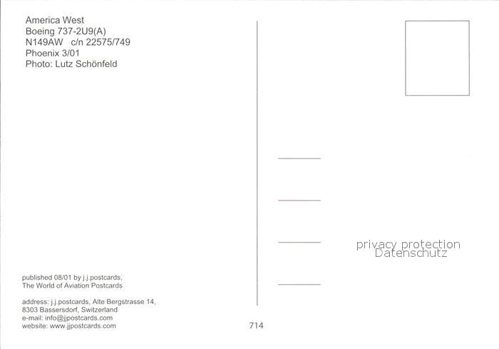 Flugzeuge Zivil America West Boeing 737-2U9 N149AW c/n 22575/749 postalisch nicht gelaufen Erhaltung siehe scans