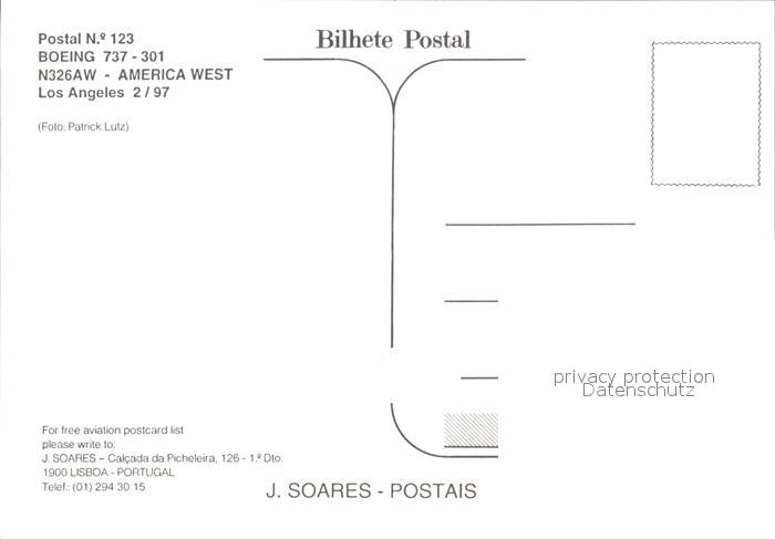 Flugzeuge Zivil America West Boeing 737-301 N326AW postalisch nicht gelaufen Erhaltung siehe scans