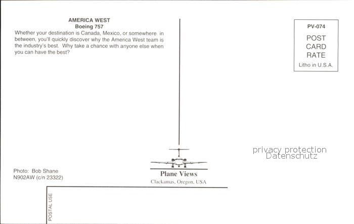Flugzeuge Zivil America West Boeing 757 N902AW c/n 23322 postalisch nicht gelaufen Erhaltung siehe scans
