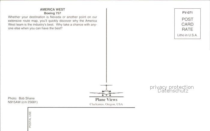 Flugzeuge Zivil America West Boeing 757 N915AW cn 25681 postalisch nicht gelaufen Erhaltung siehe scans