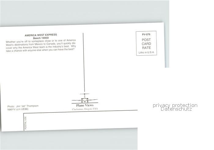 Flugzeuge Zivil America West Express Beech 1900D postalisch nicht gelaufen Erhaltung siehe scans