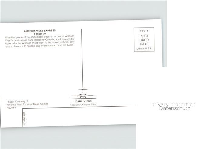 Flugzeuge Zivil America West Express Fokker 70 postalisch nicht gelaufen Erhaltung siehe scans