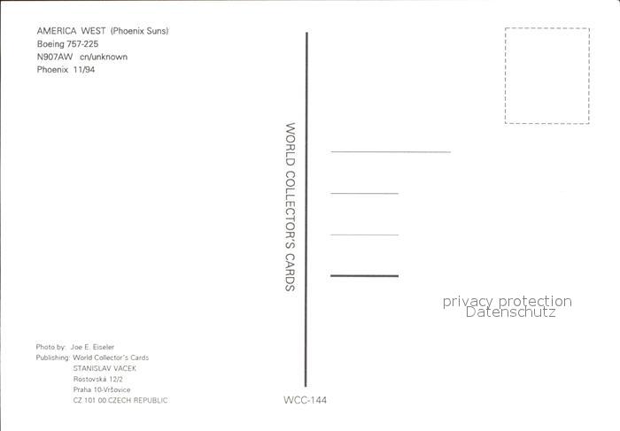 Flugzeuge Zivil America West Phoenix Suns Boeing 757-225 N907AW postalisch nicht gelaufen Erhaltung siehe scans