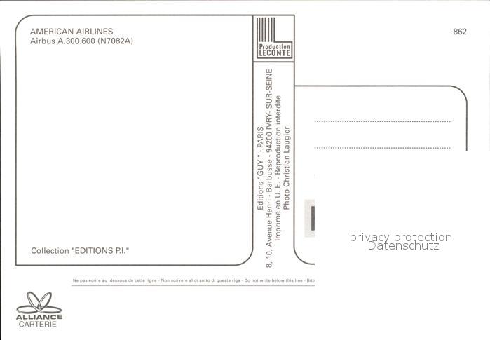 Flugzeuge Zivil American Airlines Airbus A.300.600 N7082A postalisch nicht gelaufen Erhaltung siehe scans