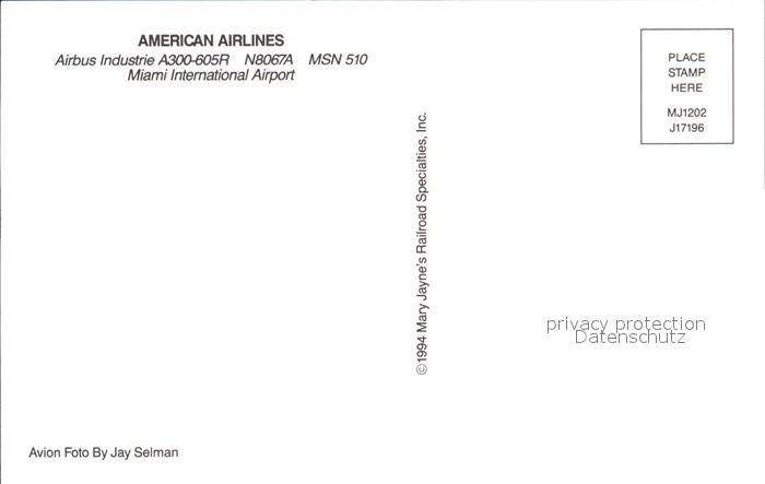 Flugzeuge Zivil American Airlines Airbus Industrie A300-605R N8067A MSN 510 postalisch nicht gelaufen Erhaltung siehe scans