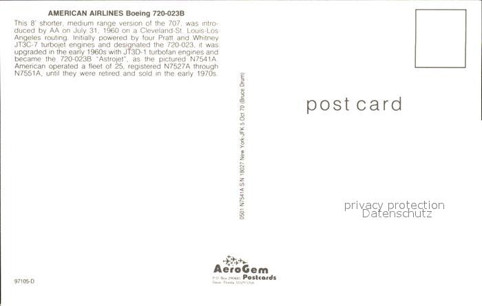 Flugzeuge Zivil American Airlines Boeing 720-023B postalisch nicht gelaufen Erhaltung siehe scans