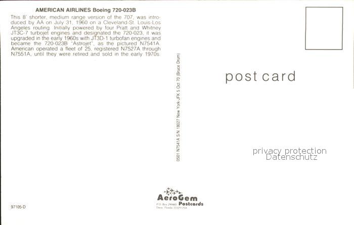 Flugzeuge Zivil American Airlines Boeing 720-023B N7541A postalisch nicht gelaufen Erhaltung siehe scans