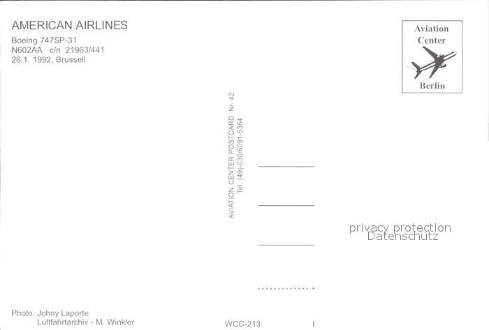 Flugzeuge Zivil American Airlines Boeing 747SP-31 N602AA c/n 21963/441 postalisch nicht gelaufen Erhaltung siehe scans
