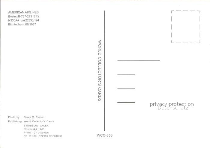 Flugzeuge Zivil American Airlines Boeing 767-223 N335AA c/n 22333/194 postalisch nicht gelaufen Erhaltung siehe scans