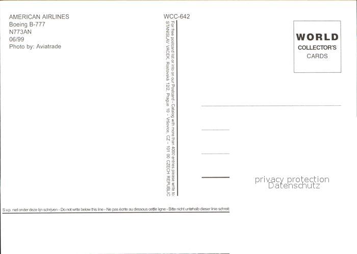 Flugzeuge Zivil American Airlines Boeing B-777 N773AN postalisch nicht gelaufen Erhaltung siehe scans