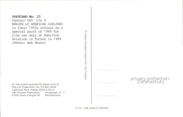 Flugzeuge Zivil American Airlines Convair 640 c/n 9 N862FW postalisch nicht gelaufen Erhaltung siehe scans