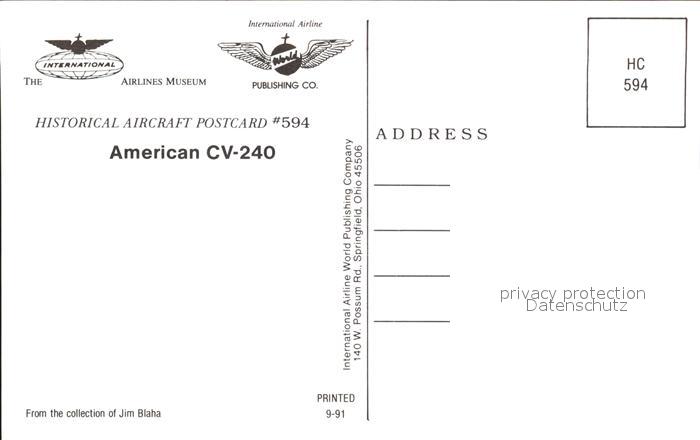 Flugzeuge Zivil American Airlines CV-240 postalisch nicht gelaufen Erhaltung siehe scans