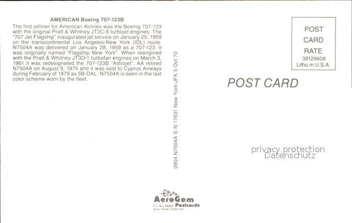 Flugzeuge Zivil American Boeing 707-123B N7504A s/n 17631 postalisch nicht gelaufen Erhaltung siehe scans