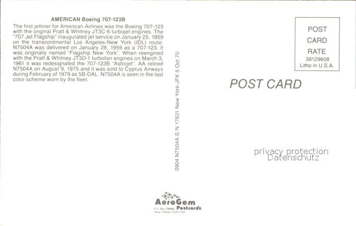 Flugzeuge Zivil American Boeing 707-123B postalisch nicht gelaufen Erhaltung siehe scans