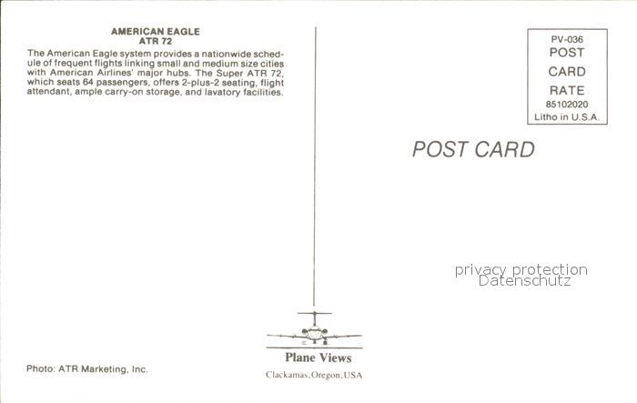 Flugzeuge Zivil American Eagle ATR 72 postalisch nicht gelaufen Erhaltung siehe scans