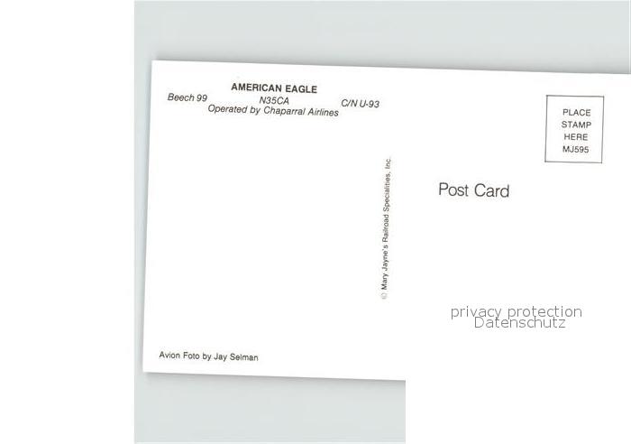Flugzeuge Zivil American Eagle Beech 99 N35CA C/N U-93 postalisch nicht gelaufen Erhaltung siehe scans