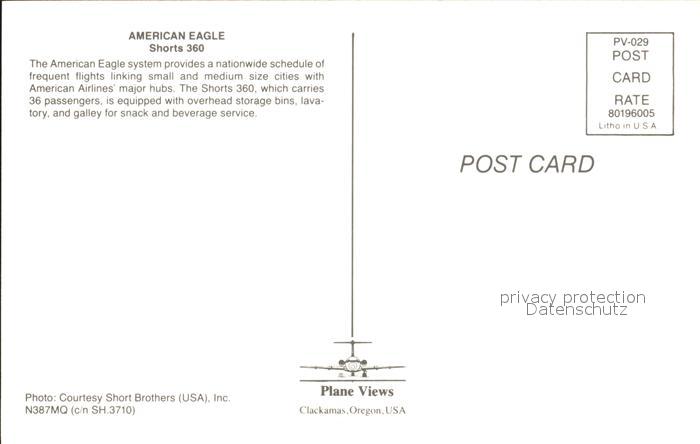 Flugzeuge Zivil American Eagle Shorts 360 postalisch nicht gelaufen Erhaltung siehe scans