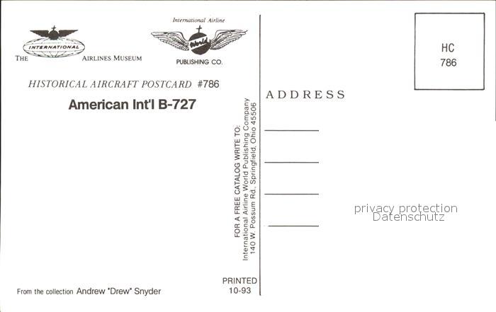 Flugzeuge Zivil American International B-727 postalisch nicht gelaufen Erhaltung siehe scans