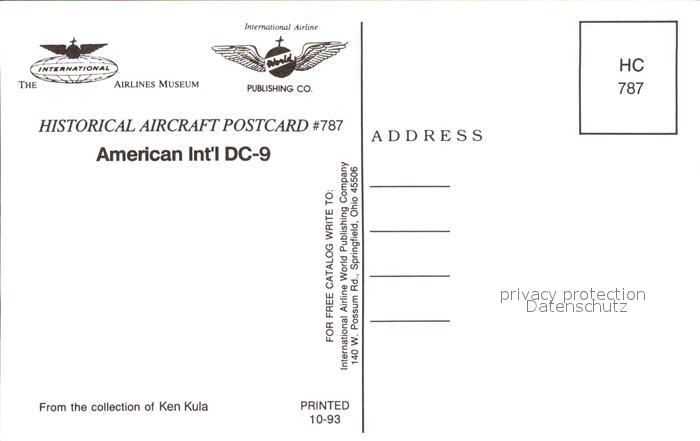 Flugzeuge Zivil American International DC-9 N3991C postalisch nicht gelaufen Erhaltung siehe scans