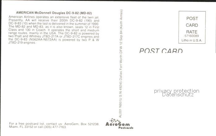 Flugzeuge Zivil American McDonnell Douglas DC-9-82 MD-82 postalisch nicht gelaufen Erhaltung siehe scans