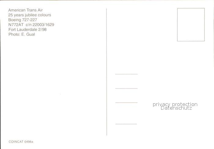 Flugzeuge Zivil American Trans Air Boeing 727-227 N772AT c/n 22003/1629 postalisch nicht gelaufen Erhaltung siehe scans
