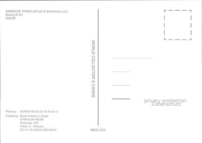 Flugzeuge Zivil American Trans Air Boeing B-757 N520AT postalisch nicht gelaufen Erhaltung siehe scans