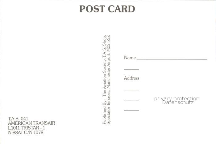 Flugzeuge Zivil American Trans Air L-1011 Tristar 1 N188AT C/N 1078 postalisch nicht gelaufen Erhaltung siehe scans
