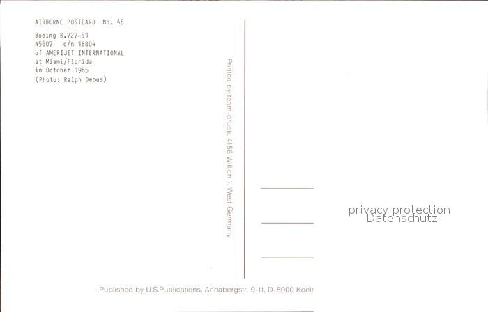 Flugzeuge Zivil Amerijet International Boeing B727-51 N5607 c/n 18804 postalisch nicht gelaufen Erhaltung siehe scans