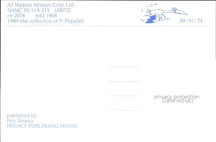 Flugzeuge Zivil ANA All Nippon Airways NAMC YA 11A-213 JA8722 cn 2078 postalisch nicht gelaufen Erhaltung siehe scans