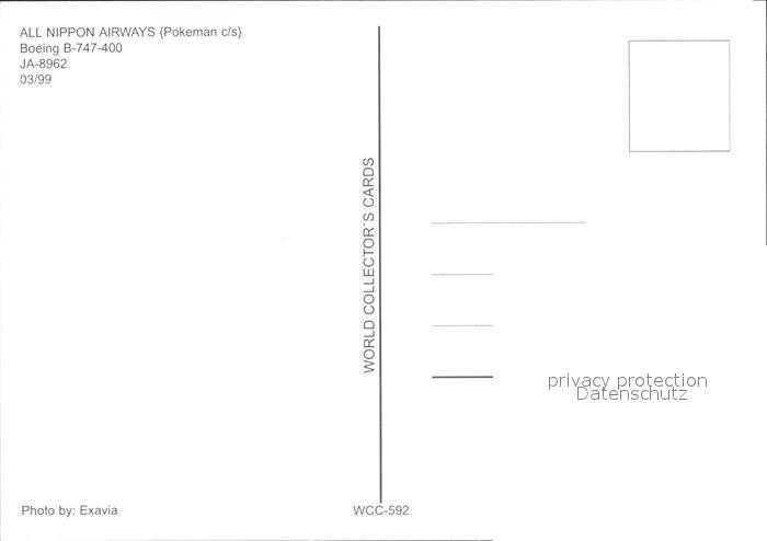 Flugzeuge Zivil ANA All Nippon Airways Pokeman c/s Boeing B-747-400 JA-8962 postalisch nicht gelaufen Erhaltung siehe scans