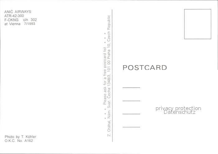 Flugzeuge Zivil ANIC Airways ATR-42-300 F-OKNG Vienna postalisch nicht gelaufen Erhaltung siehe scans