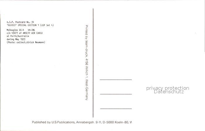 Flugzeuge Zivil Ansett Air Cargo McDouglas DC-4 VH-INL c/n 43071 postalisch nicht gelaufen Erhaltung siehe scans