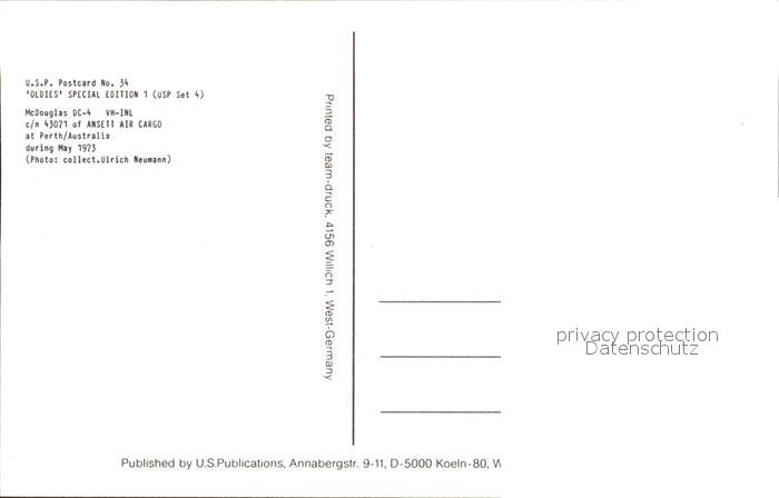 Flugzeuge Zivil Ansett Air Cargo McDouglas DC-4 VH-INL c/n 43071 postalisch nicht gelaufen Erhaltung siehe scans