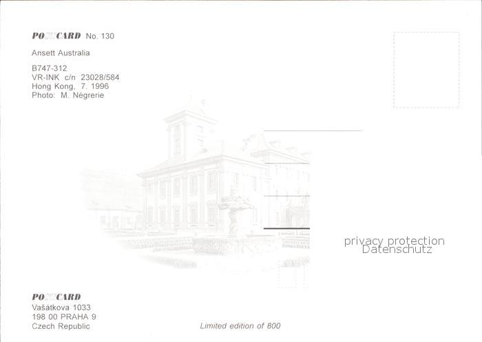 Flugzeuge Zivil Ansett Australia B-747-312 VR-INK c/n 23028/584 postalisch nicht gelaufen Erhaltung siehe scans