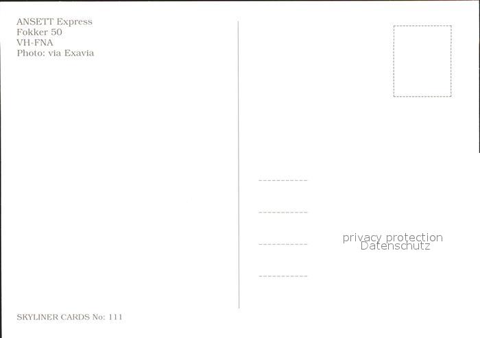 Flugzeuge Zivil Ansett Express Fokker 50 VH-FNA postalisch nicht gelaufen Erhaltung siehe scans