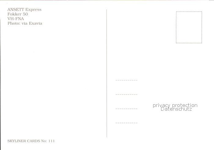 Flugzeuge Zivil Ansett Express Fokker 50 VH-FNA postalisch nicht gelaufen Erhaltung siehe scans