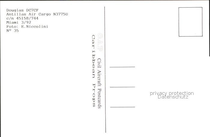 Flugzeuge Zivil Antillas Air Cargo Douglas DC7CF N37750 c/n 45158/744 postalisch nicht gelaufen Erhaltung siehe scans