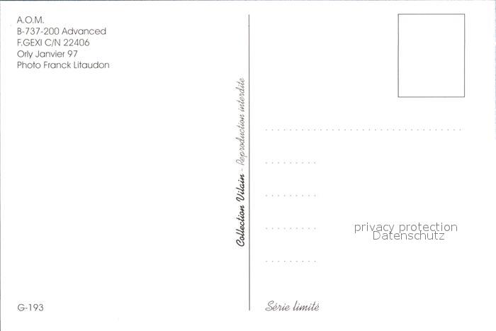 Flugzeuge Zivil AOM B-737-200 Advanced F.GEXI c/n 22406 postalisch nicht gelaufen Erhaltung siehe scans