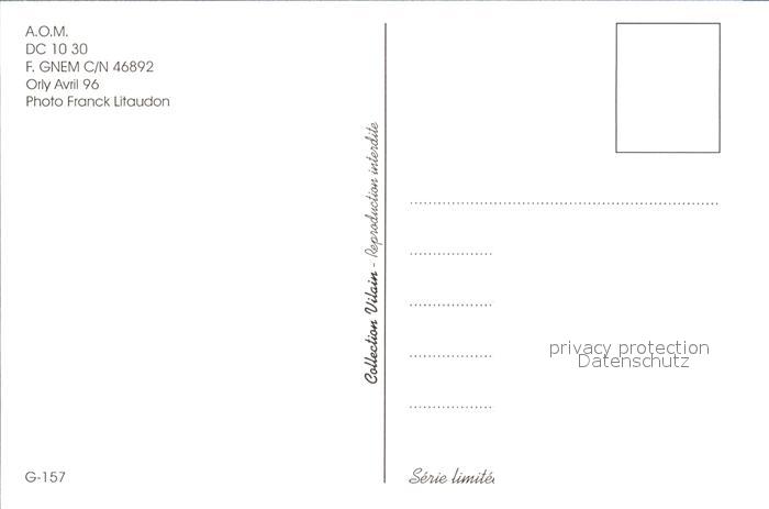 Flugzeuge Zivil AOM DC-10-30 F-gnem C/N 46892 postalisch nicht gelaufen Erhaltung siehe scans