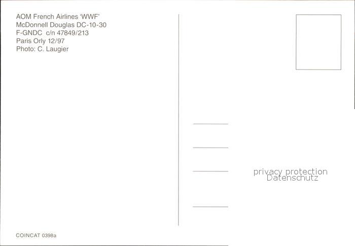 Flugzeuge Zivil AOM French Airlines WWF McDonnell Douglas DC-10-30 F-GNDC c/n 47849/213 postalisch nicht gelaufen Erhaltung siehe scans
