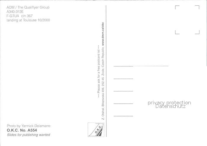 Flugzeuge zivil AOM The Qualiflyer Group A340-313E F-GTUA c/n 367 Toulouse postalisch nicht gelaufen Erhaltung siehe scans