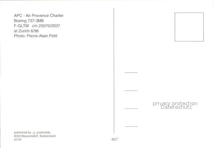 Flugzeuge Zivil APC Boeing 737-3M8 F-GLTM c/n 25070/2037 postalisch nicht gelaufen Erhaltung siehe scans