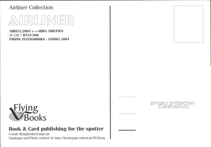 Flugzeuge Zivil Aqaba Airlines B737-300 JY-JAB postalisch nicht gelaufen Erhaltung siehe scans
