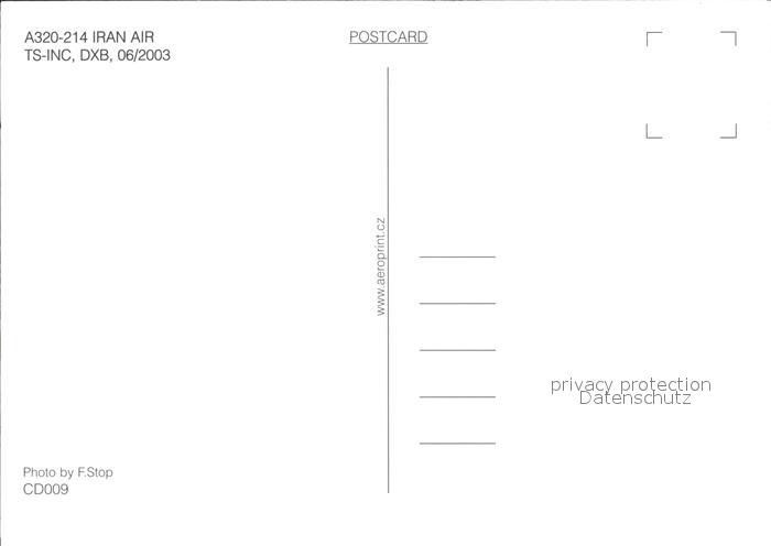 Flugzeuge Zivil Aran Air A320-214 TS-INC postalisch nicht gelaufen Erhaltung siehe scans