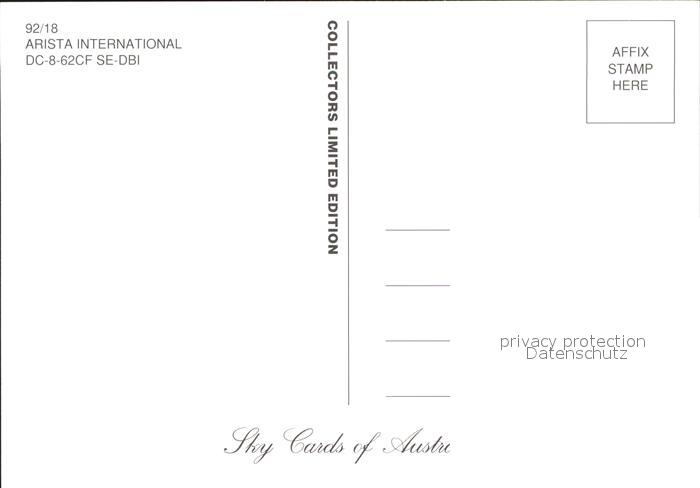 Flugzeuge Zivil Arista International DC-8-62CF SE-DBI postalisch nicht gelaufen Erhaltung siehe scans