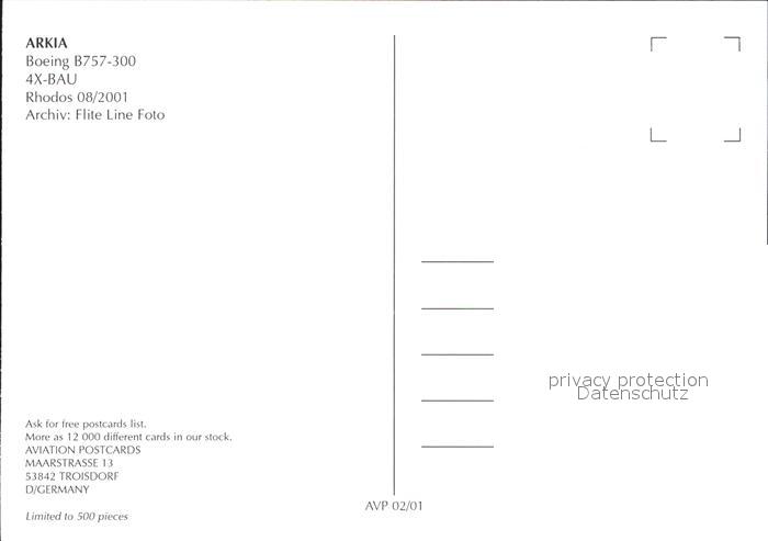 Flugzeuge Zivil ARKIA Boeing B757-300 4X-BAU postalisch nicht gelaufen Erhaltung siehe scans