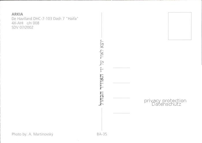 Flugzeuge Zivil Arkia Havilland DHC-7-103 Dash 7 Haifa 4X-AHI c/n 008 postalisch nicht gelaufen Erhaltung siehe scans